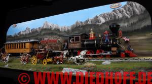 Einmalige umgebaute Westernlok mit Tender und Personenwagen. (Einzelstück)