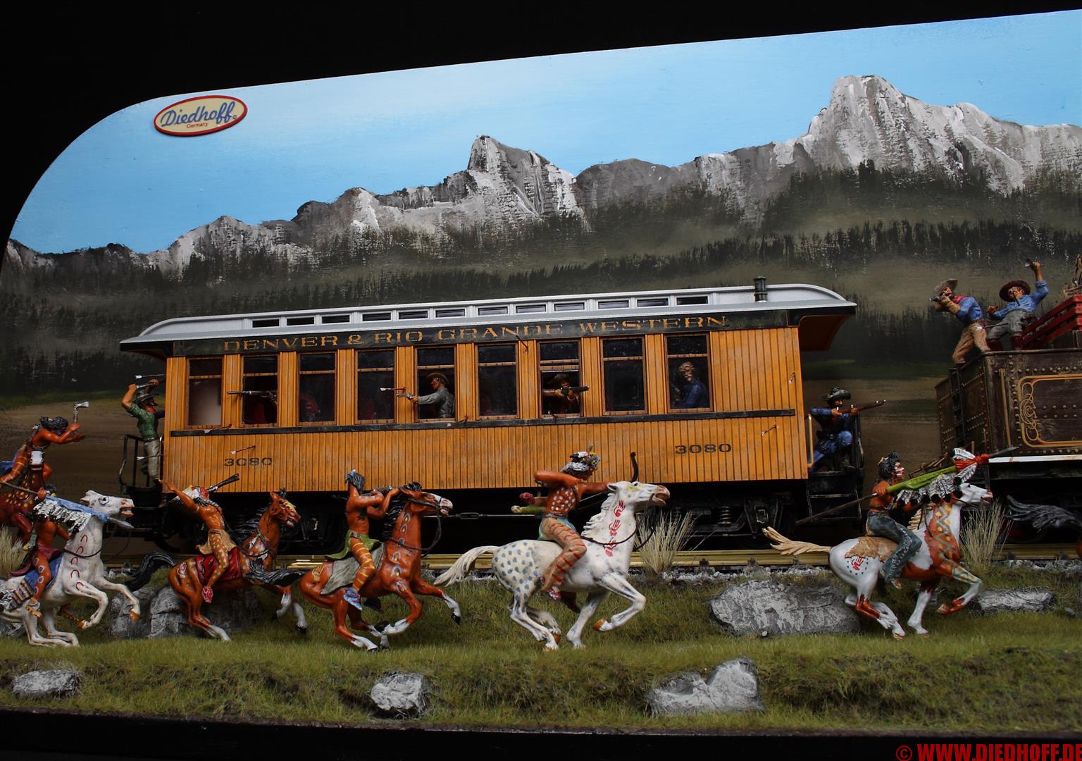 Bestückung des Dioramas: 8x aufwändig umgebaute und bemalte Indianer -Reiter (Einzelstücke).